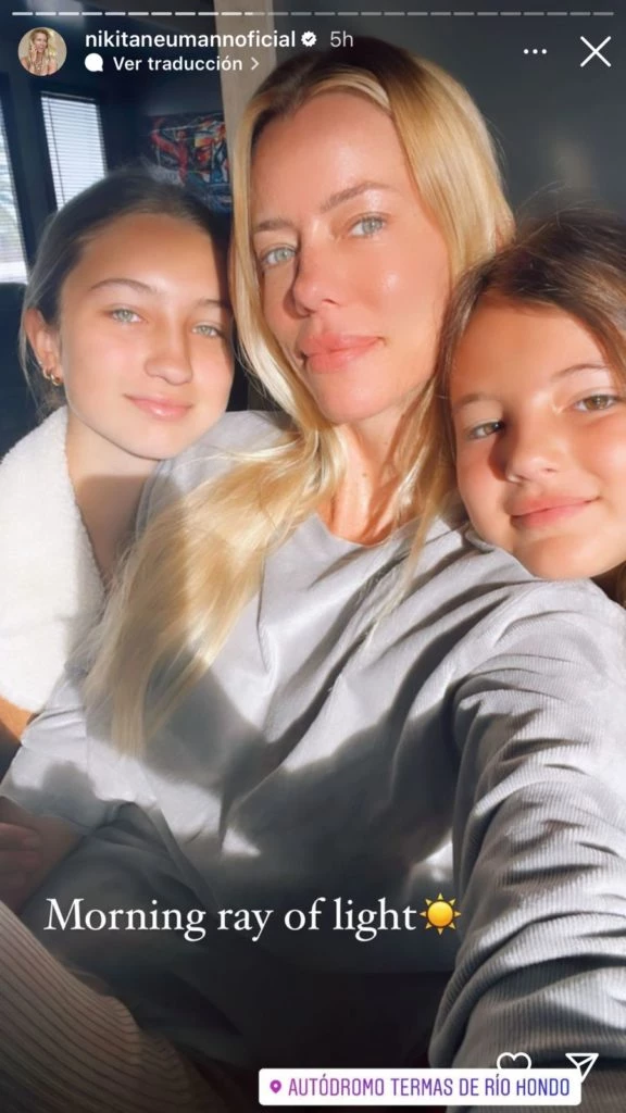En un principio se había dicho que la modelo viajaría con su pareja, el piloto Manu Urcera, a Europa para esta fecha dejando a las nenas con el padre, pero finalmente la conductora está en el país junto a sus hijas, aunque lejos de Buenos Aires.