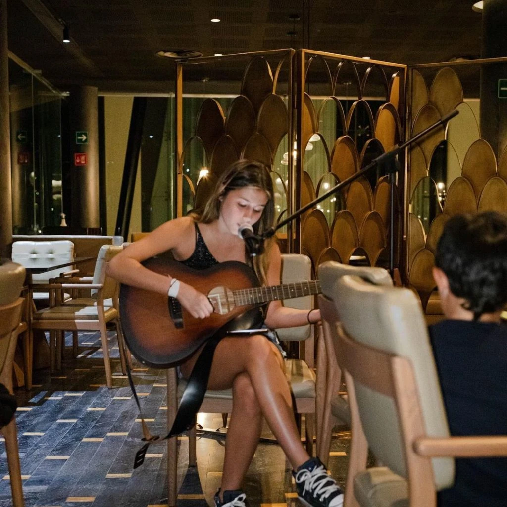 La noche del cumpleaños de su padre cobró spotlight cuando en la celebración íntima en el All Inclusive en el que se hospeda toda la familia, Delfina agasajó a todos con un mini recital.