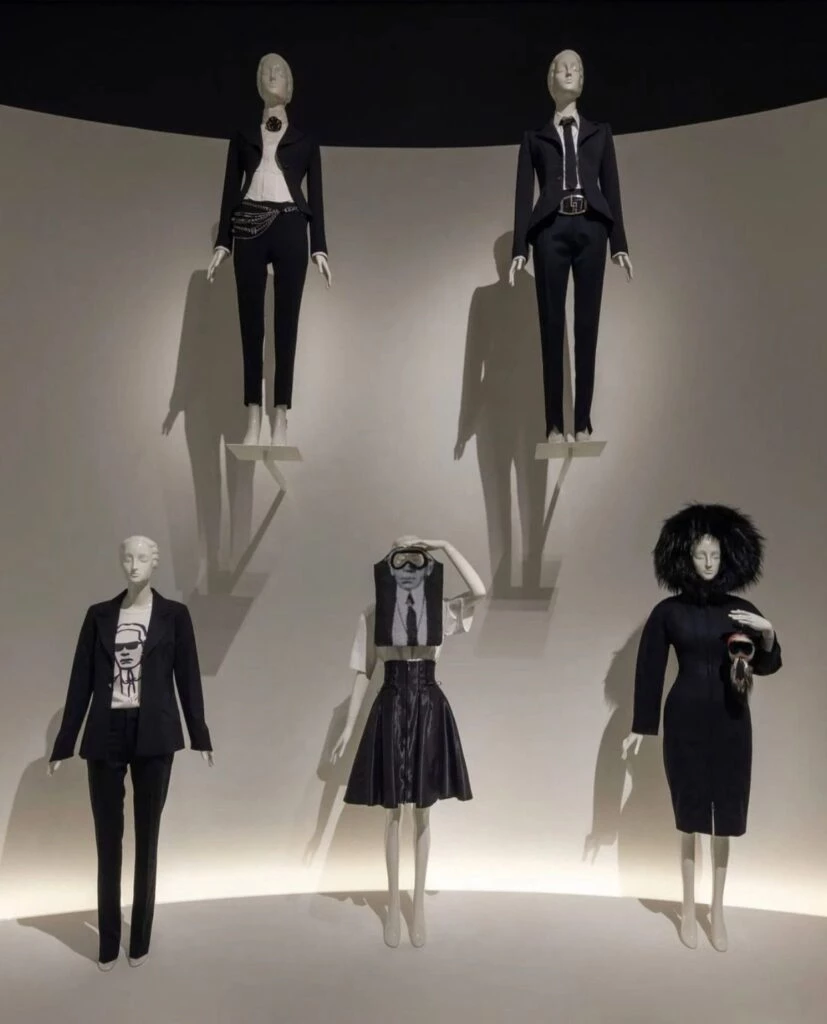 La muestra incluye prendas que creó en firmas como Balmain, Chloé, Fendi, Patou, Chanel y su marca homónima (Karl Lagerfeld).