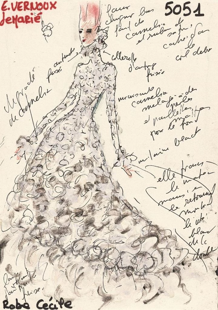El estilo del creador alemán se caracterizaba por el uso de pocos colores, a menudo el blanco y el negro, y por su gusto por las incrustaciones y los bordados de perlas, cristales o lentejuelas, con la delicadeza que distingue a la alta costura del prêt-à-porter.