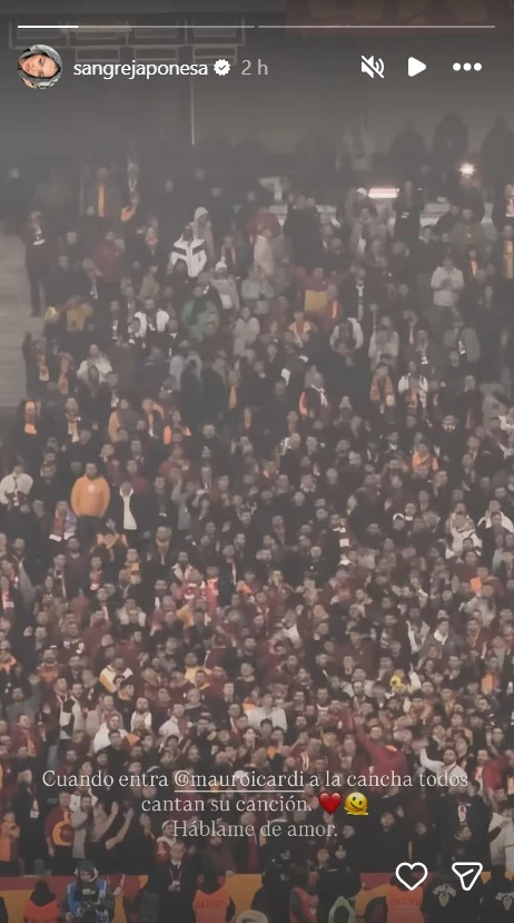 El video, grabado desde la tribuna del estadio donde jugó el Galatasaray, muestra el instante exacto en que Icardi ingresa al campo de juego. La tribuna explota en cánticos y saltos, coreando su nombre. La actriz capturó ese momento de euforia colectiva y lo acompañó con una frase que terminó de blindar su postura: “Cuando entra Mauro Icardi a la cancha todos cantan su canción. Hablame de amor”. Con estas palabras, la China dejó clara su elección: mantenerse del lado del futbolista y hacerlo en el territorio donde él recibe más cariño actualmente, el de los hinchas turcos.