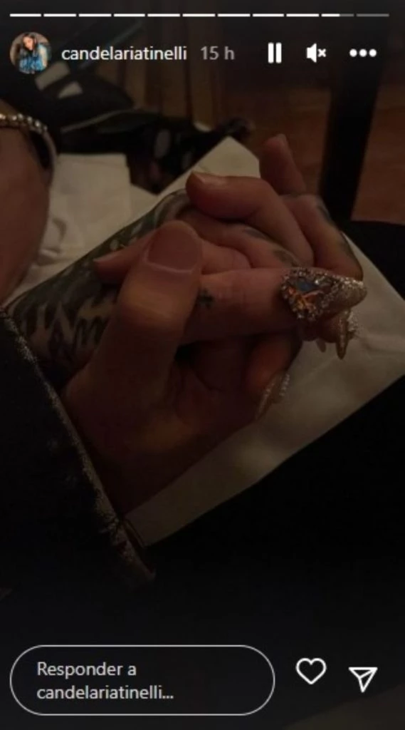 Ahora, fue la propia Cande Tinelli quien compartió en sus historias de Instagram una tierna foto en la cual se ven dos manos entrelazadas y lo etiquetó al músico, quien compartió la misma imagen en su perfil.