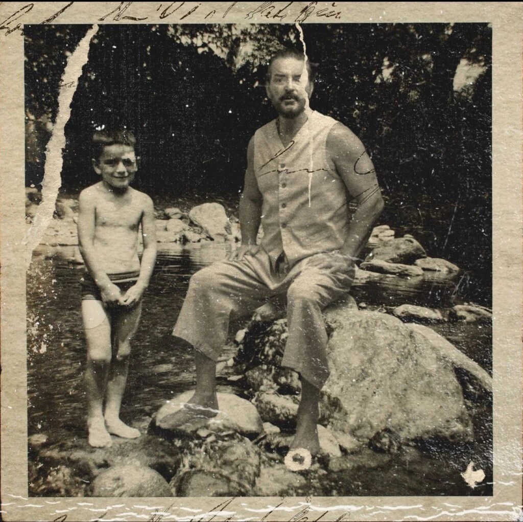 artista que aparece con un niño, Arjona mismo, junto a un arroyo. Este retrato minimalista y crudo en sepia, simboliza el retorno a sus raíces y su mirada introspectiva en esta nueva producción.