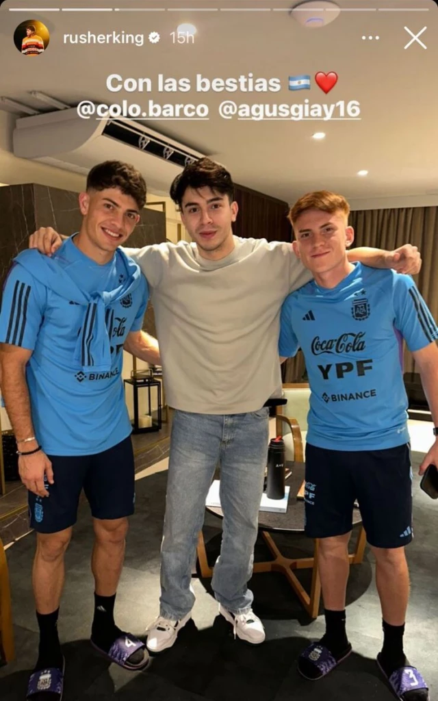 El viernes por la noche el trapero disfrutó de una velada que incluyó panchos, música y videojuegos con el plantel de la Selección Sub20 y compartió una imagen junto a Valentín Barco y Agustín Giay en sus redes sociales. Este sábado, desde las 18 horas, el combinado de Javier Mascherano se medirá ante Uzbekistán en el estadio Madre de Ciudades de Santiago del Estero.