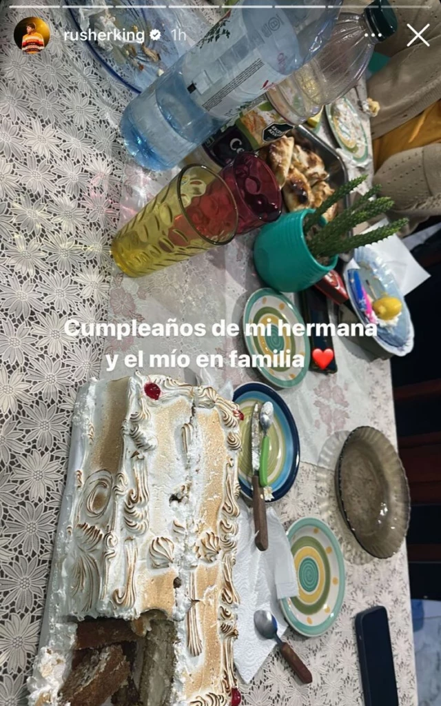 En el mediodía del sábado, ya en la fecha de su cumpleaños, el cantante posteó fotos de su almuerzo familiar: empanadas caseras y torta. "Cumpleaños de mi hermana y el mío en familia", escribió, con el emoji de un corazón. Minutos más tarde, mostró otras tortas y delicias que sus fanáticas le hicieron llegar. "Gracias por los regalitos", expresó.