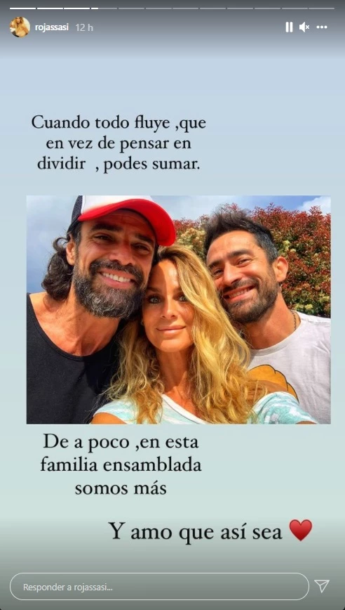 "Cuando todo fluye, que en vez de pensar en dividir, podés sumar. De a poco en esta familia ensamblada somos más y amo que así sea", escribió la modelo junto a un emoji de corazón rojo en su publicación realizada en una historia de Instagram.