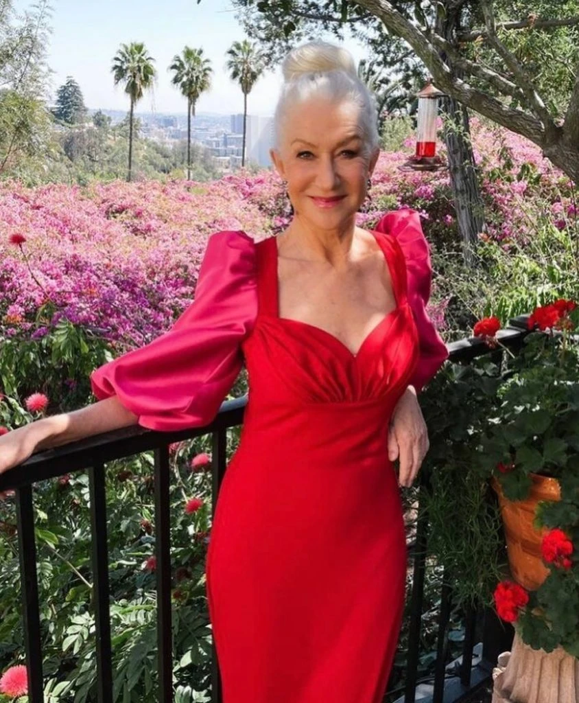 Helen Mirren (75) by Michael Kors y Badgley Mischka.