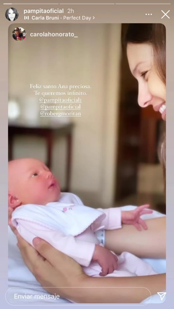 Quien felicitó a los padres de la pequeña Ana García Moritán Ardohain fue Carola Honorato, amiga de la familia, quien no dudó en compartirlo en sus Instagram stories.