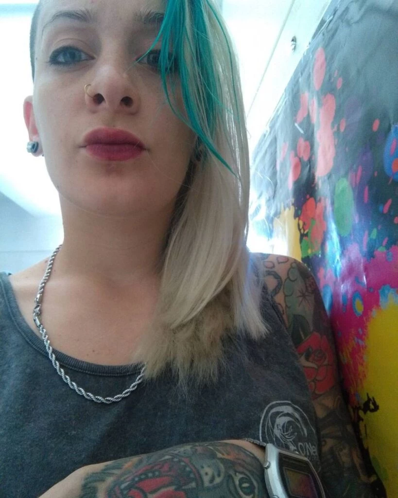 Su pelo rapado, sus enormes tatuajes y su septum en la nariz la posicionan como una de las que más resaltan dentro de Gran Hermano.