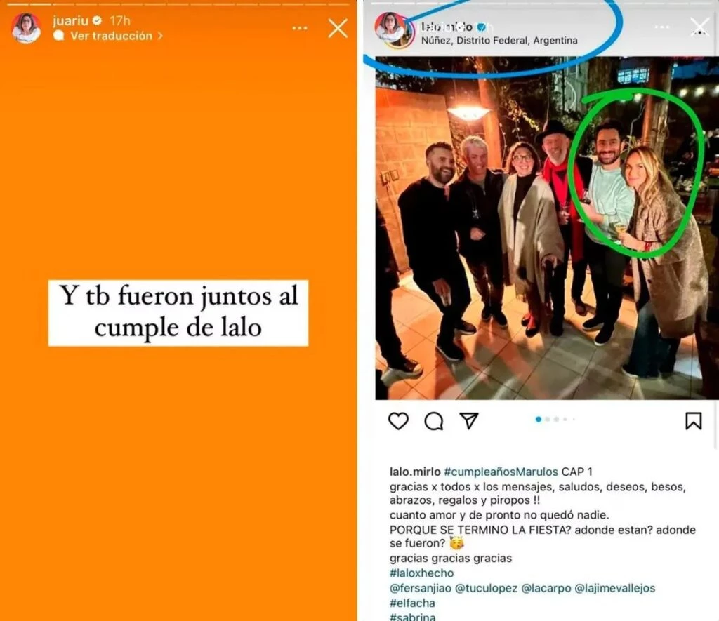 “Y también fueron juntos al cumple de Lalo”, añadió luego, en otra historia de Instagram con la foto donde compartieron la misma cena y se los vio tomando algo. Luego, la influencer de farándula Gossipeame compartió otra imagen donde se los ve juntos tomados del brazo.