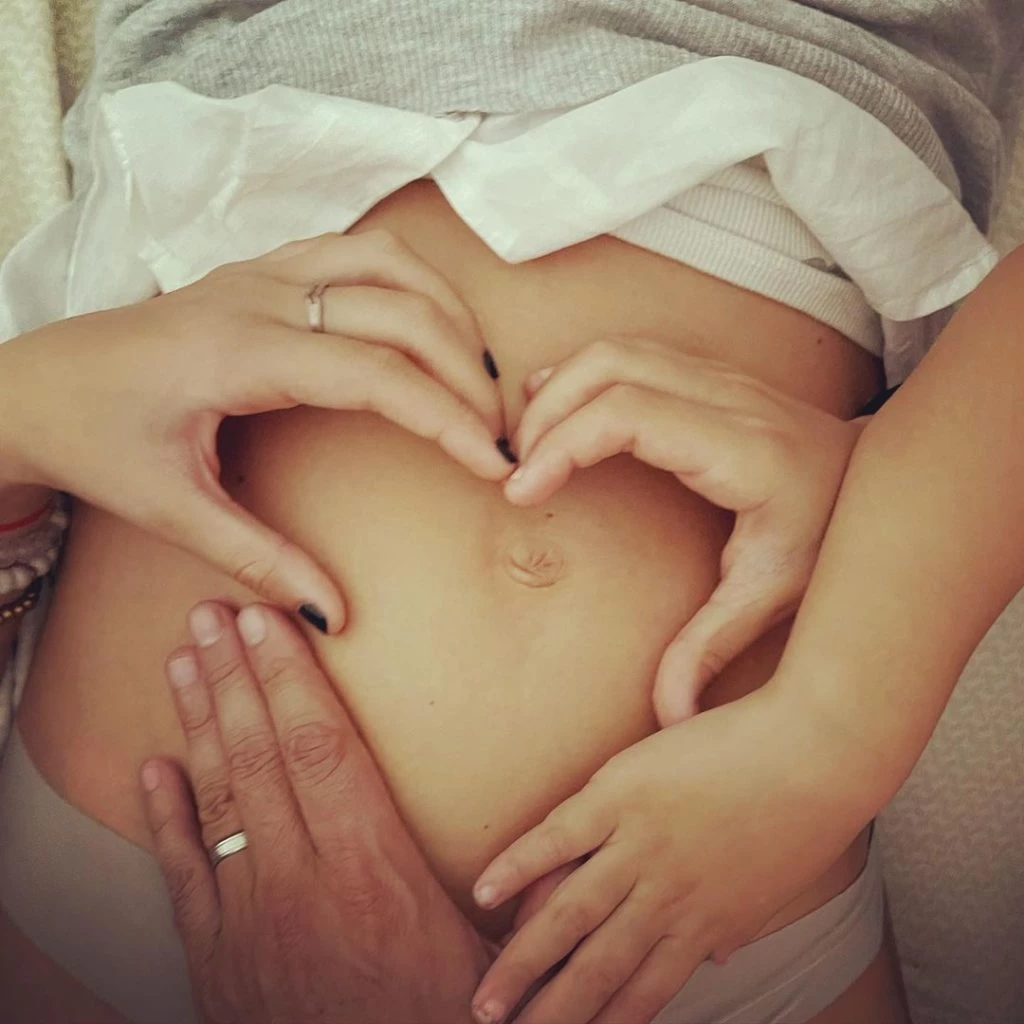 El actor anunció el embarazo con una foto de la panza de su pareja y las manos de sus hijos formando un corazón y escribió: “Más felices no podemos estar! Se agranda la familiaaa! Besoos!” .