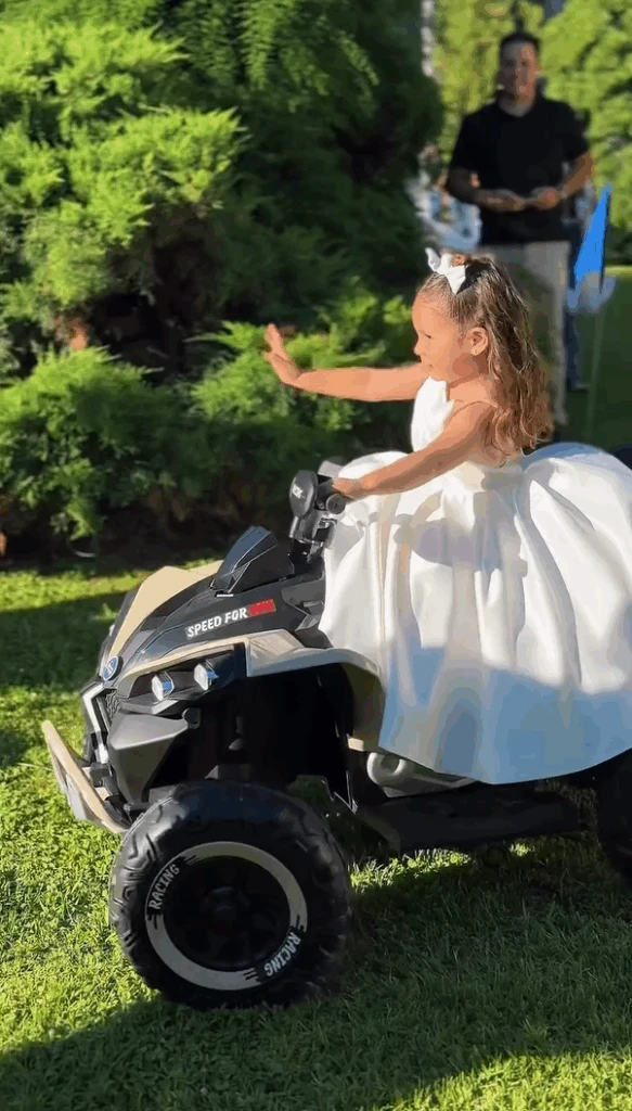 El video exclusivo que llegó a nuestra redacción no deja dudas sobre la magnitud del evento. Las imágenes revelaron el momento en que Sarhita, sin miedo, se subió a un cuatriciclo adaptado para niños, recorriendo parte del majestuoso jardín.