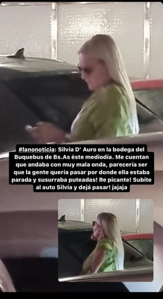 Las imágenes las compartió "Pochi", la periodista de redes sociales, a través de su página de Instagram, @Gossipeame. "Me cuentan que andaba con muy mala onda, parecería que la gente quería pasar por donde ella estaba parada y susurraba puteadas. Re picante", escribió sobre Silvia D'Auro.
