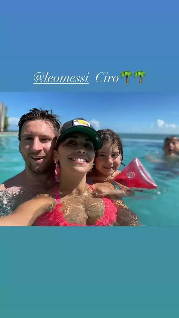 Fue su esposa, Antonela Roccuzzo, quien compartió las primeras postales de la familia en modo vacaciones en su cuenta de Instagram. Primero posteó una selfie de ella y su marido y de atrás el pequeño Ciro.