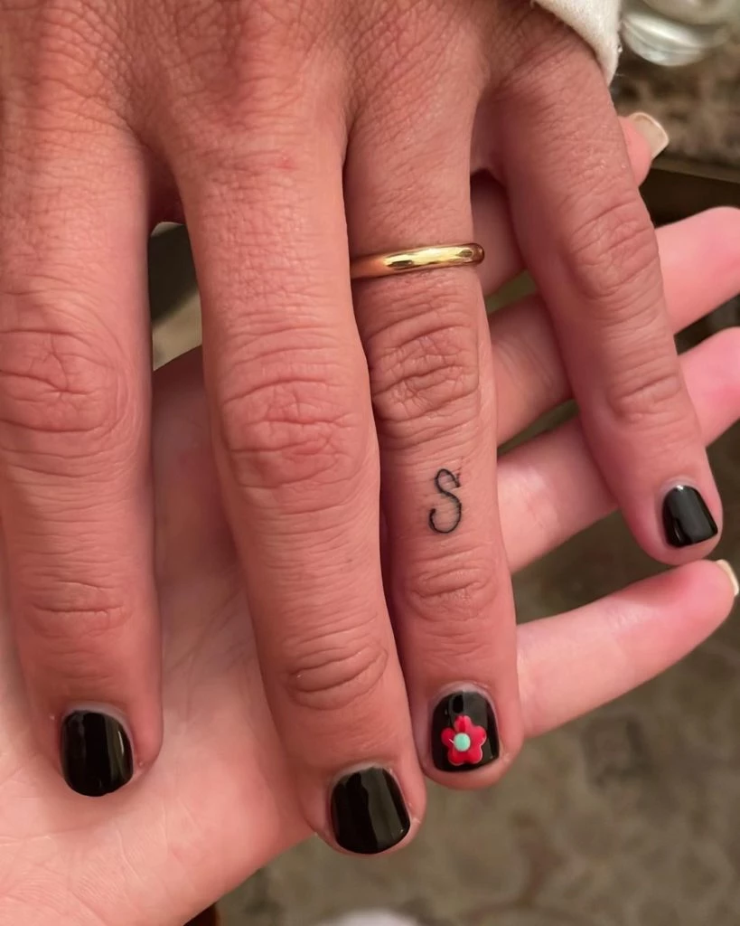 En sus historias de Instagram, la influencer mostró que ambos decidieron tatuarse sus respectivas iniciales en sus dedos. "2 años de novios; 5 días de casados", comentó Roitman junto a la romántica postal.