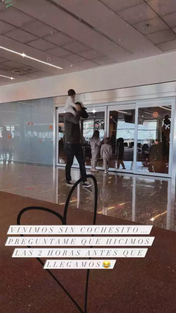 A través de las Stories, Paula fue relatando el minuto a minuto de su viaje. En un primer momento, la conductora mostró cómo estaban pasando la espera en el aeropuerto porque no llevaron cochecito.