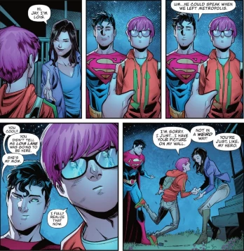 DC Comics detalló que, como su padre, Jon Kent también es reportero, y explicó que este personaje entabla una amistad con un compañero periodista llamado Jay Nakamura con quien, posteriormente, empezará una relación romántica.