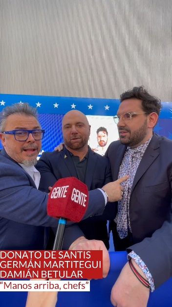 El popular e implacable jurado de "MasterChef Celebrity" (Donato de Santis, Germán Martitegui, Damián Betular) también es protagonista del reality “Manos Arriba, Chef!”, un formato en el que se enfrentan entre sí en para conocer quién es el mejor chef de ellos. Para ello, los tres cocineros debieron formar equipos con otros participantes para preparar platos donde no pueden usar sus propias manos para cocinar.