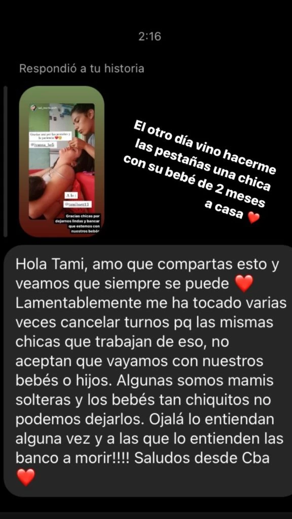 En los días siguientes a esta publicación la joven comenzó a seguir etiquetada por diferentes mujeres en sus redes sociales que se animaron a seguir sus pasos y de muchos centros de belleza que comenzaron a tomar la iniciativa de presentar las condiciones necesarias para que cualquier madre con sus hijos bebés puedan disponer de sus servicios.