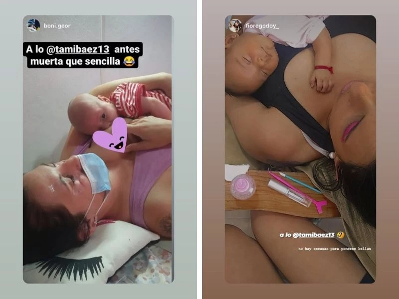 Es por esto que decidida a poder cambiar la mirada a veces crítica contra las madres que asisten a los centros de belleza con sus hijos, compartió un posteo en el que mostró la forma particular en la que es atendida. Acostada sobre una cama Tamara Báez se realiza su tratamiento de pestañas mientras amamanta a Jamaica. "La realidad de cada vez que me hago las pestañas. Siempre tenemos que tener un tiempo para nosotras aunque seamos mamis!", escribió Baez en el pie de la imagen.