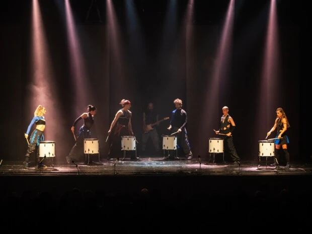 Currents es una experiencia escénica que se describe como un estallido de ritmo, luz y energía. Es un espectáculo familiar de 75 minutos, completamente no verbal, donde el lenguaje universal del ritmo lo dice todo.