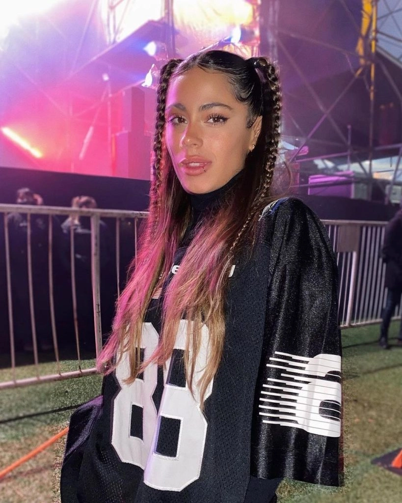 Fiel a su estilo, Tini lució un outfit holgado y no pasó desapercibida. Se trata de un remerón color negro y con el número 88 similar, muy deportivo, y un peinado muy particular: dos colitas altas con trencitas.