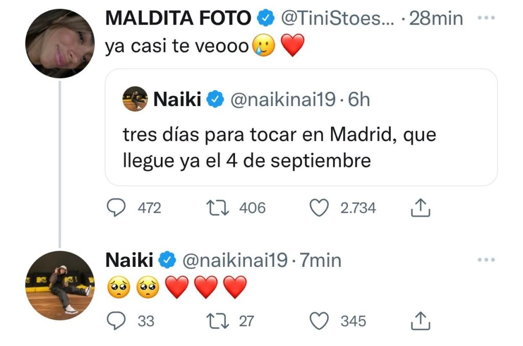 Ambas artistas tienen en común el éxito, la fama, la juventud y el talento. A pesar de esto, hasta el momento no se habían mostrado juntas de manera pública ni tampoco se habían escrito a través de las redes sociales. Es por esto que, a raíz de un tuit de Tini, los fanáticos de las cantantes explotaron en las redes y ya fantasean con una colaboración de sus ídolas.