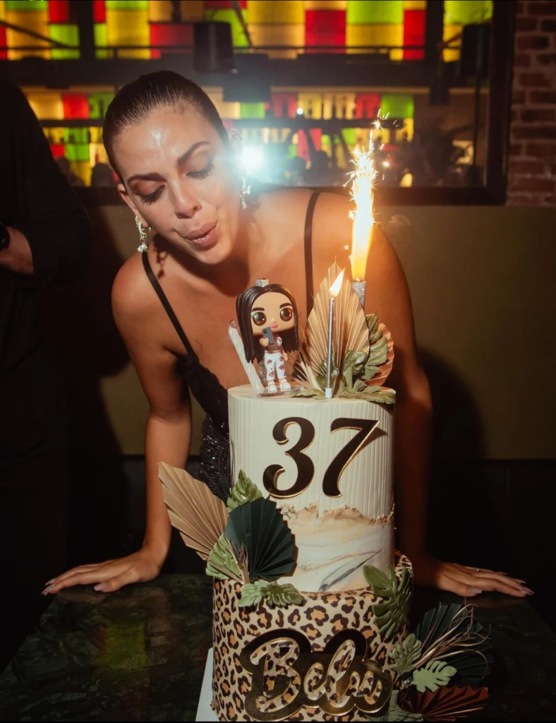 Mientras que, la parte superior de la torta incluyó el número 37 en grande y una muñequita de la influencer, vestida con un look muy canchero que se robó las miradas.