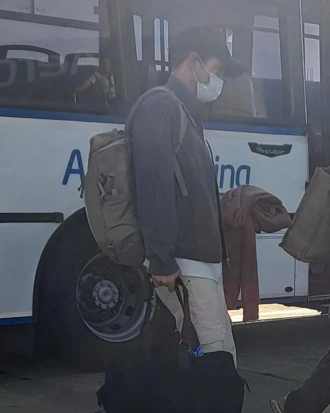 Esta mañana, el actor de The Batman fue fotografiado al llegar a la ciudad de Bariloche: siempre con perfil bajo, con una cap, una mochila y el barbijo puesto, se trasladó hacia allí en un micro de larga distancia de la empresa Argentina.