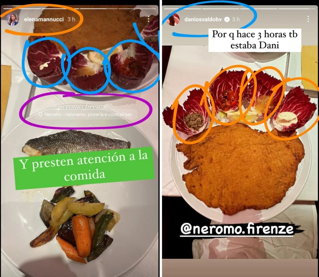 La periodista es oriunda de la localidad donde se encuentra el ex delantero de Boca Juniors, y ambos compartieron este fin de semana desde sus cuentas de Instagram que estaban cenando en el mismo lugar, las mismas comidas y hasta la misma decoración de los platos.