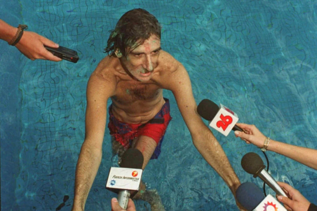 Charly García continuaba enojado con el policía y, decidió saltar desde el piso nueve del Hotel Aconcagua para demostrar que 'no era una persona más'. “Esta fue la primera cosa deportiva que realmente disfruté en mi vida”, afirmó el músico ante los cronistas que se acercaron a entrevistarlo. “Lo hice muchas veces. Me gusta tirarme. Siento vacío y después el agua mojada”, agregó.