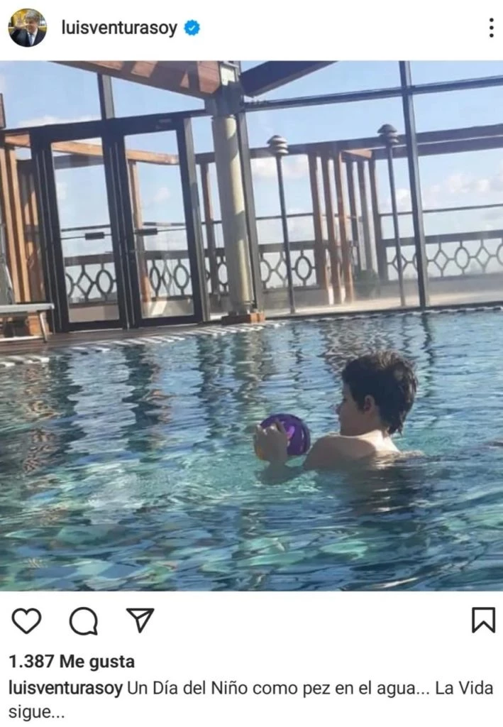 En las últimas horas, Luis, compartió a través de su red social una foto del pequeño en la pileta y escribió: “Un Día del niño como pez en el agua…La vida sigue…”