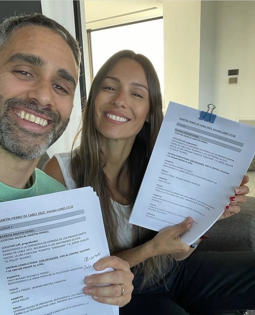 "Este jueves 20 de octubre vas a vivir la celebración de los premios más importantes de la TV por cable en la pantalla de @cronicatv. Ya nos estamos preparando con el @polloalvarez con mucha alegría para conducir por segundo año consecutivo! No se lo pierdan!!", escribió Pampita en su cuenta de Instagram para anunciar que será la responsable de la conducción de esa importante gala.