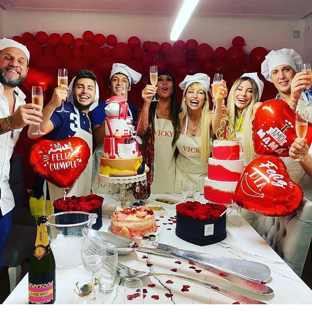 La Griega invitó a amigos y familiares para celebrar a lo grande. En las fotos que compartió en sus redes sociales se puede ver a todos los invitados con un delantal "MasterChef" que decía "Vicky".