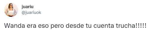 La periodista de espectáculos Juariu, fue una de las primeras en dar su primer teoría sobre lo sucedido: "Wanda, era eso pero desde tu cuenta trucha". Al momento, la esposa de Icardi no dio explicaciones ni excusas sobre lo sucedido.