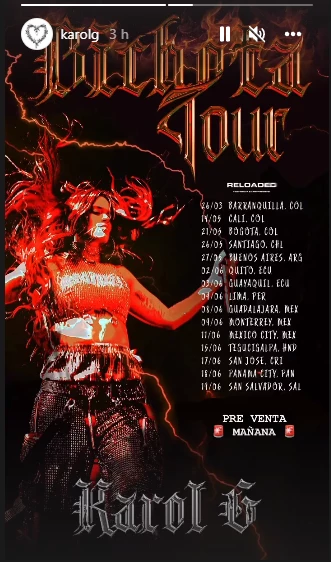 Ella misma publicó en sus historias de Instagram (donde posee casi 50 millones de seguidores) una imagen donde detallaba las ciudades que visitaría con sus respectivas fechas. El día del concierto en nuestro país es el 27 de mayo y se realizará en el Movistar Arena. Esto se da en el marco de su "Bichota Tour reloaded".