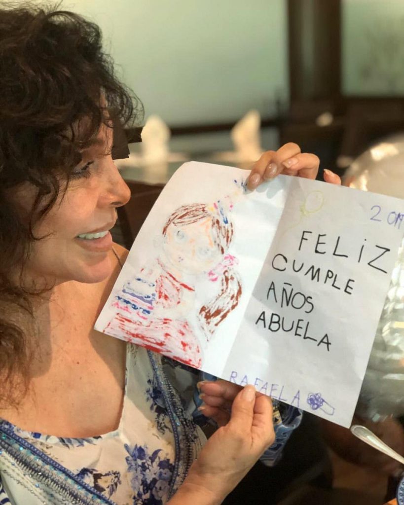 La actriz festejó su cumpleaños número 67 rodeada del amor de su familia, amigos y de sus fans, quienes a través de las redes sociales la llenaron de emotivas felicitaciones, "Siento que hice un gran festejo, ya que estuve rodeada del amor de toda mi gente". Sin embargo, la que más llamó la atención fue la de su nieta Rafaela, quien le cantó las mañanitas a la actriz.