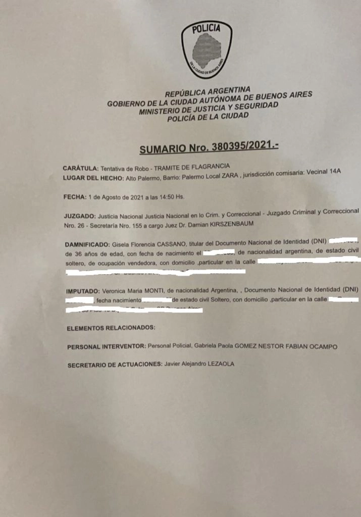Según la información oficial, Verónica fue sorprendida por la seguridad del centro comercial y la detuvieron. Tras esta situación, Verónica fue trasladada a la Comisaría Comunal número 14 de la Ciudad Autónoma de Buenos Aires.