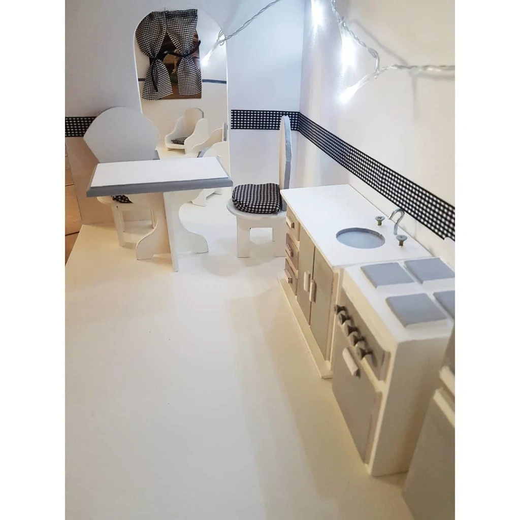 La casita de muñecas que eligió para Salvador es de Art Casas y es XXL Premium. ¿Por qué es premium? Porque cuenta con instalación de luz propia.