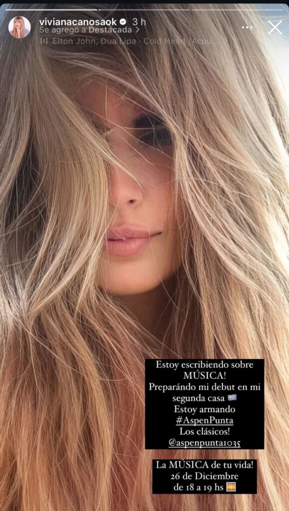 Fue desde sus historias de Instagram, donde tiene más de 800 mil seguidores, que Viviana compartió una selfie y escribió: "Desde el 26 de diciembre me escuchás en Aspen Punta. La música de tu vida de 18 a 19 horas".