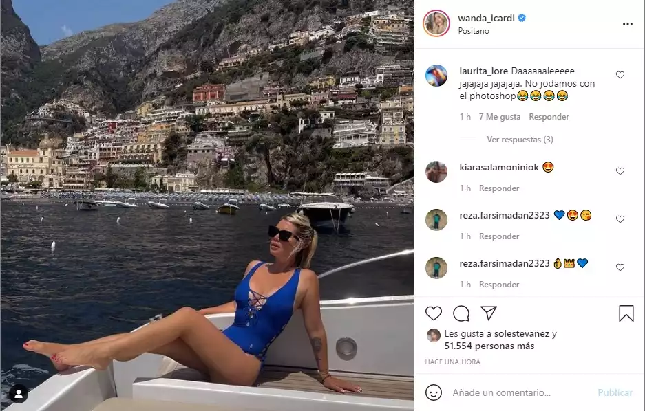 "Ya siento la nostalgia", escribió en italiano junto a su posteo donde se la ve recostada en el lujoso yate con anteojos de sol y una vista increíble de Positano. La publicación cosechó más de 51 mil "Me Gusta" y cientos de comentarios, entre ellos fuertes críticas.