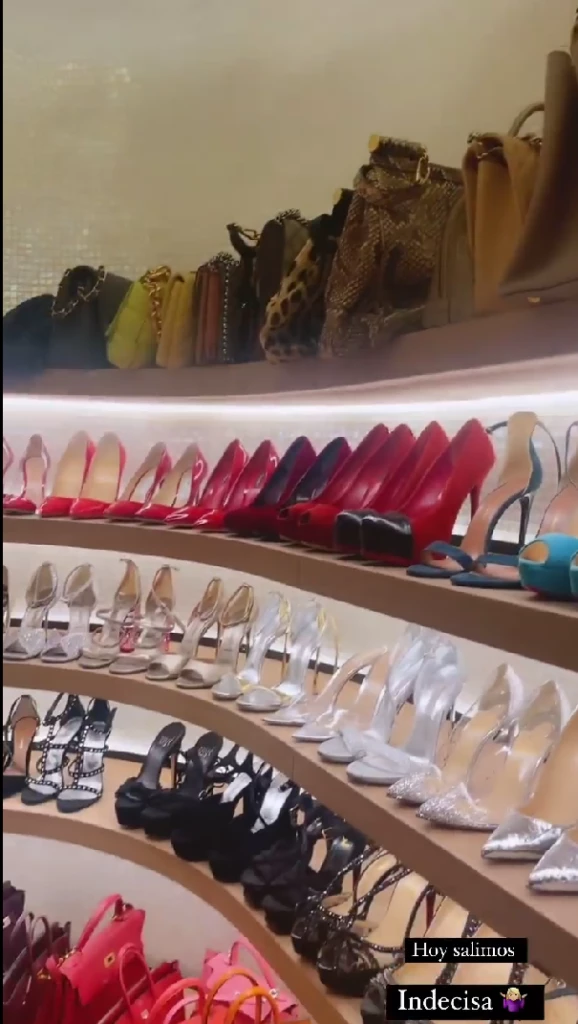 En las imágenes pueden verse zapatos Dior y carteras y bolsos marca Hermes entre otras tantas marcas que suele utilizar la empresaria. Al contar la cantidad de accesorios que se ven en el video la cifra supera las 100 unidades entre zapatos y carteras.
