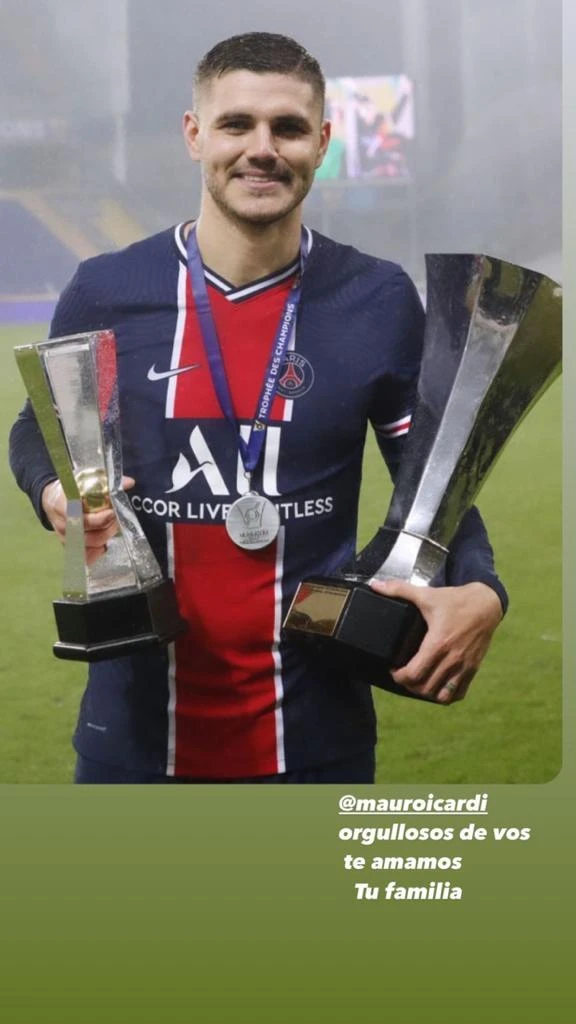 Después de la publicación con Neymar, Wanda le dedicó un posteo sólo a Mauro, en el que compartió la imagen triunfante de su marido y escribió: "Qué orgullo tenemos de tenerte. Dos copas más, amor de mi vida".