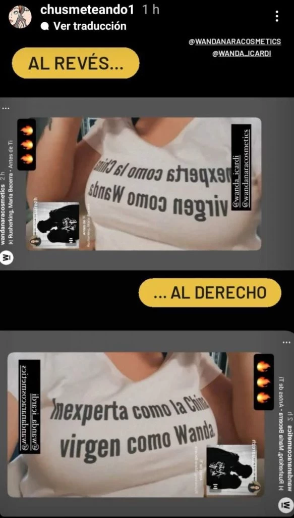 La hermana mayor de Zaira Nara compartió una foto de su cuenta de cosméticos en las que se puede ver a una mujer con una remera que tiene una sugestiva frase que hace referencia al escándalo que involucra a la actriz y Mauro Icardi. "Inexperta como la China y virgen como Wanda", dice la leyenda.