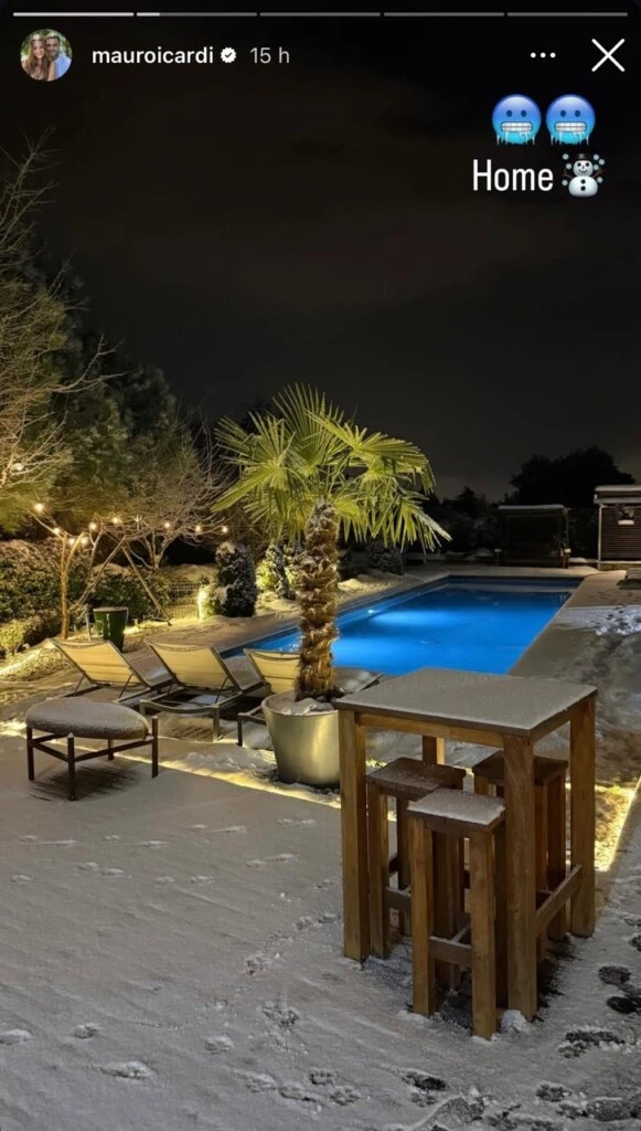 Es que, según mostró en la postal que subió a sus redes sociales, todo el jardín de su casa estaba nevado, del frío que hacía. "Home (hogar)", escribió Icardi junto a un emoji de un muñeco de nieve y dos caritas congeladas.