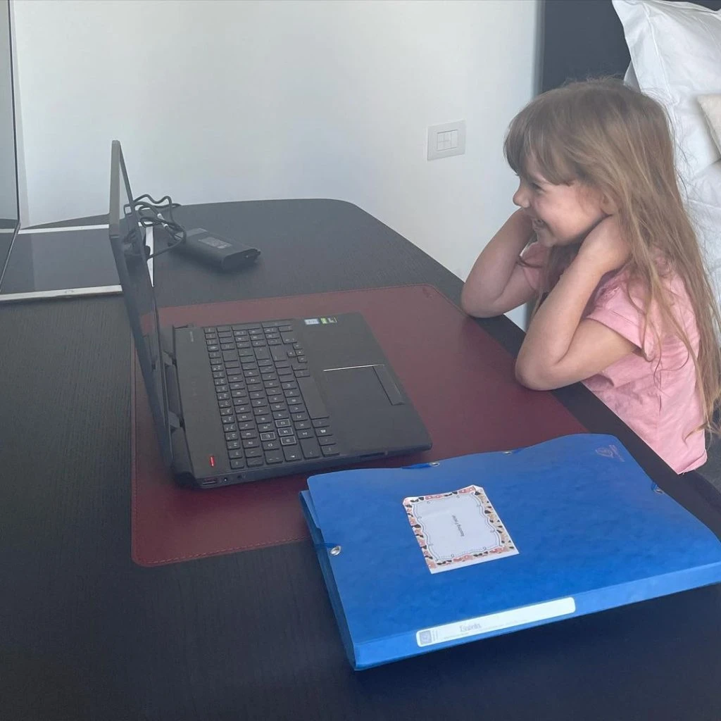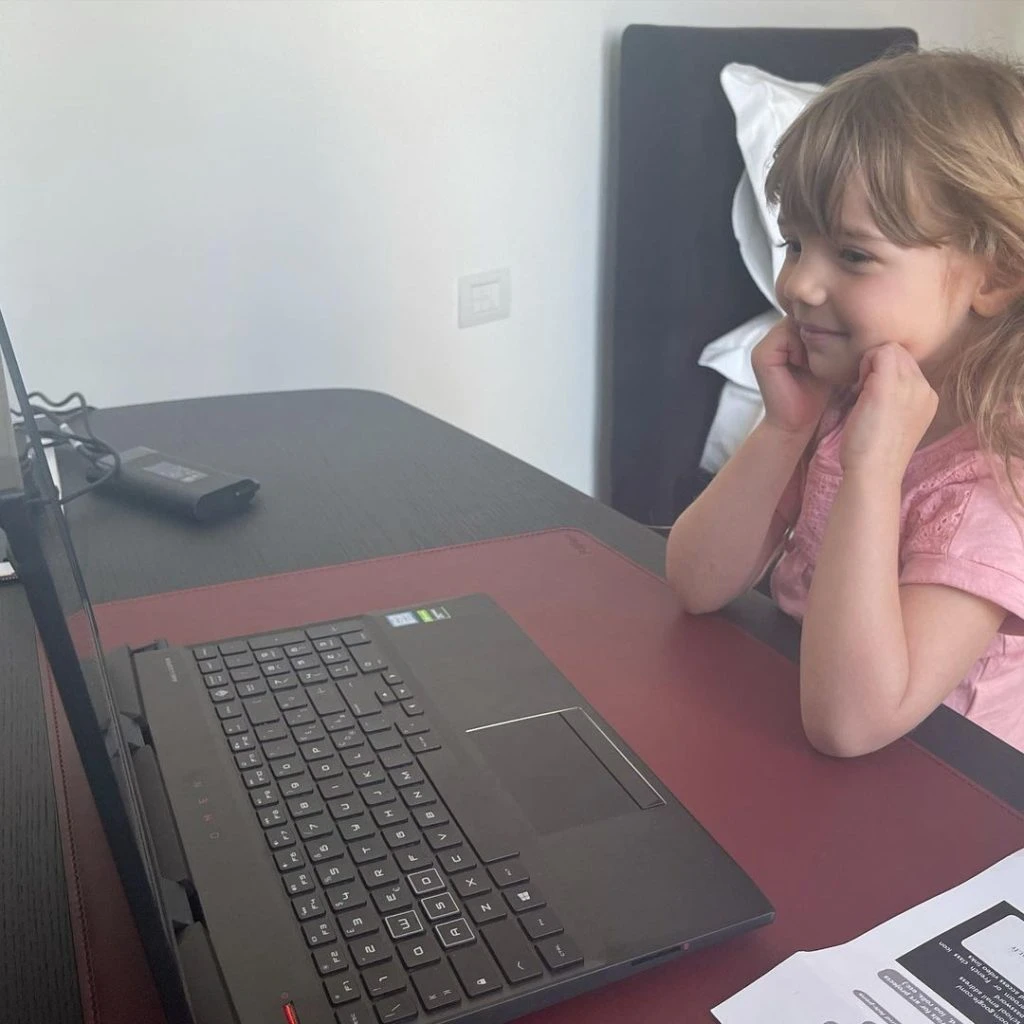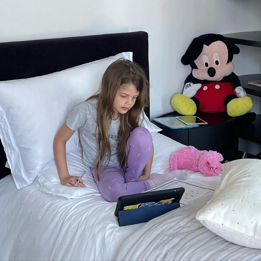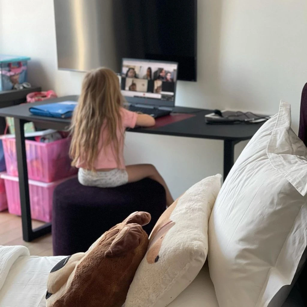 Viendo a sus herederos conectados a sus computadoras, la empresaria e influencer reflexionó: "Y detrás de ellos me encuentro yo, sin tiempo de peinarme ni de cambiarme desde las 8 am hasta que terminan sus clases online...".