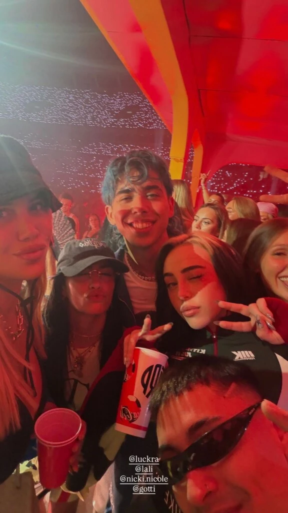 La ex de Mauro Icardi disfrutó del recital desde un sector privilegiado junto a varias figuras de la escena local. Entre risas, bailes y brindis, se mostró súper compinche con Lali, Luck Ra, Nicki Nicole, Tiago PZK y Yami Safdie, con quienes compartió gran parte de la velada.