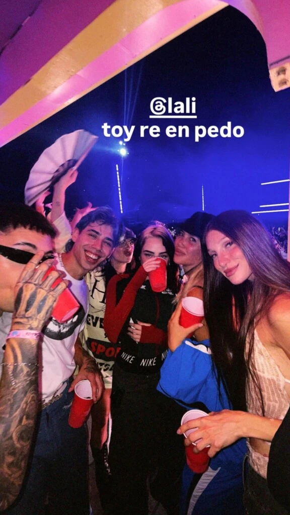 En la tercera postal, el grupo se amplió y el clima fue aún más relajado. Entre risas, poses y un aire de celebración, se los vio disfrutando del show como un grupo de amigos más, aunque rodeados de uno de los eventos musicales más convocantes del año. “@lali toy re en pedo”, se leyó en la historia, reflejando el espíritu distendido de la noche.