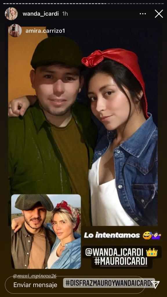 En una serie de reposteos sin cesar, la modelo hizo gala en sus Instagram stories de las repercusiones del wandagate y se divirtió con el hecho de haber sido junto a su esposo la gran y masiva inspiración de la última celebración de Halloween.