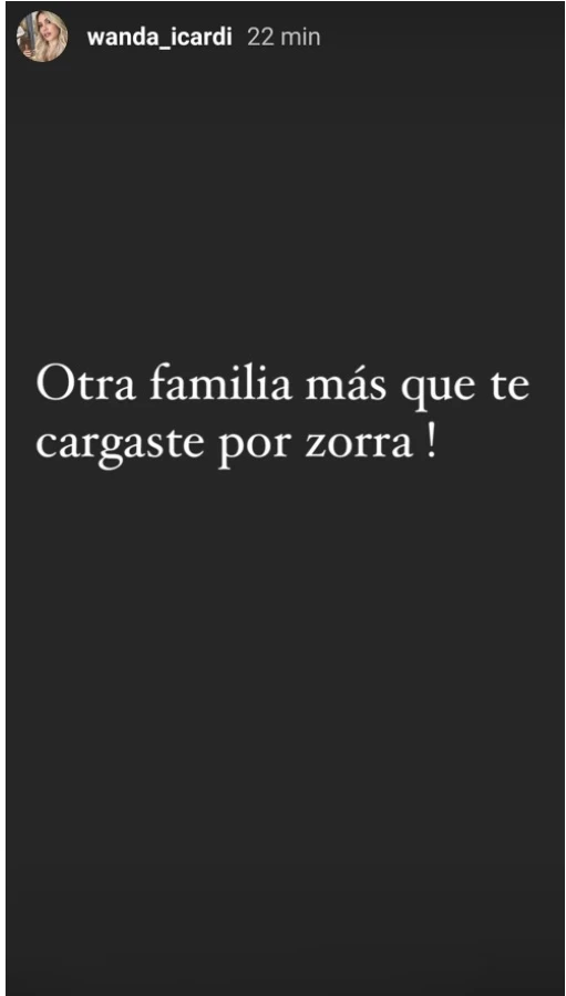 "Otra familia más que te cargaste por zorra", escribió Nara en sus historias de Instagram. Aunque a los pocos minutos decidió borrar su posteo, pero muchos de los usuarios hicieron captura y relacionaron su fuerte dedicatoria con el padre de sus hijas, Francesca e Isabella.